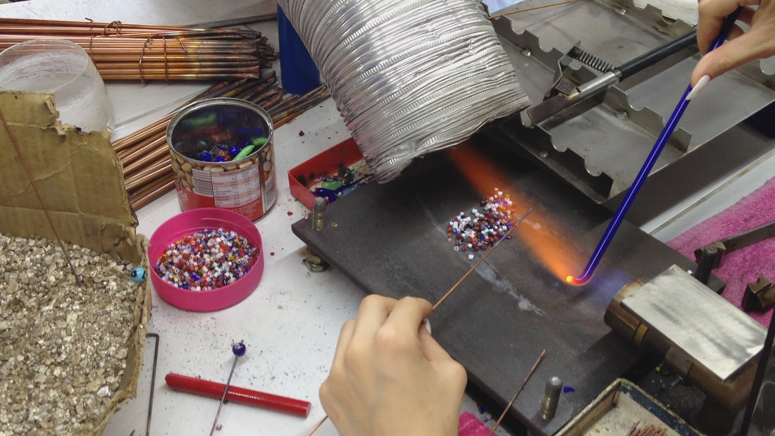 La lavorazione del vetro di Murrina è la più lunga e laboriosa delle tre tecniche, dopo aver tagliato in tanti piccoli pezzi la canna di Murrina